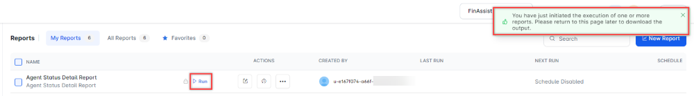 - In the list of reports, choose the Agent Status Detail Report.