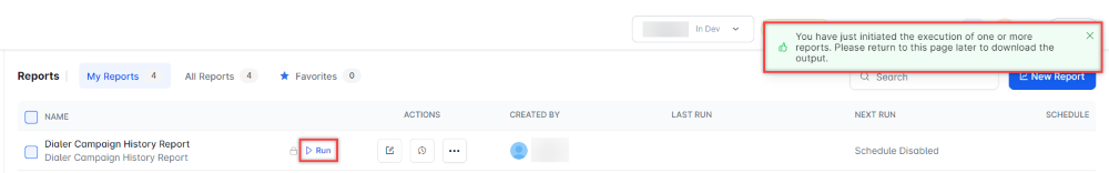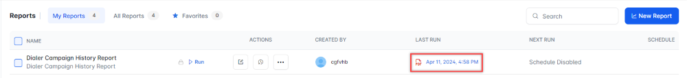 The Dialer Campaign History Report is generated and is available for download.