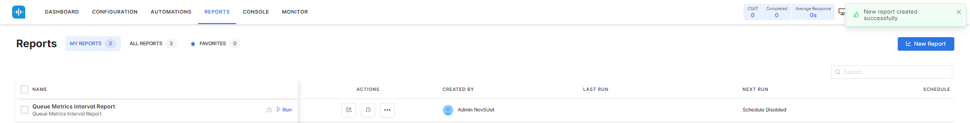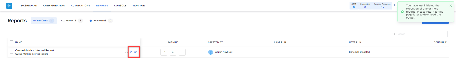 The Queue Metrics Interval Report is generated and is available for download.