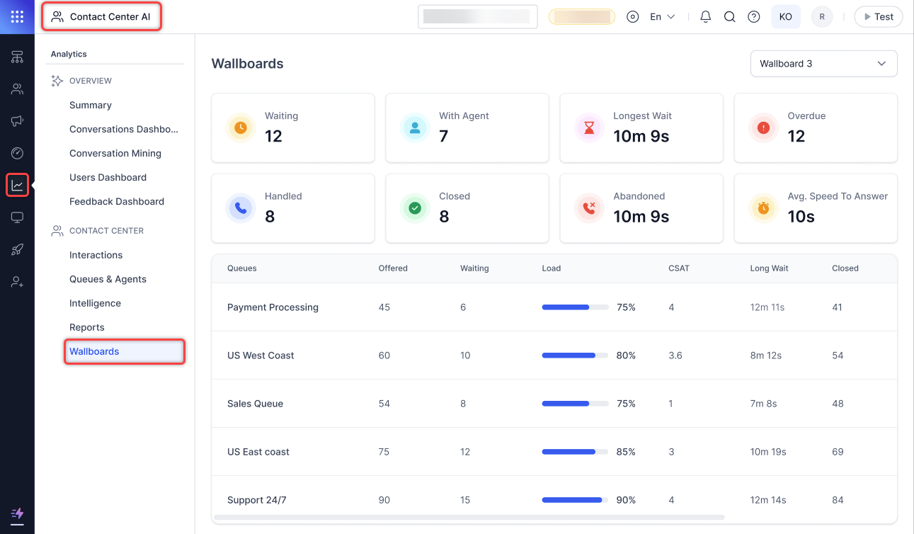You can also access wallboards by going to Contact Center AI > Analytics > CONTACT CENTER > Wallboards.