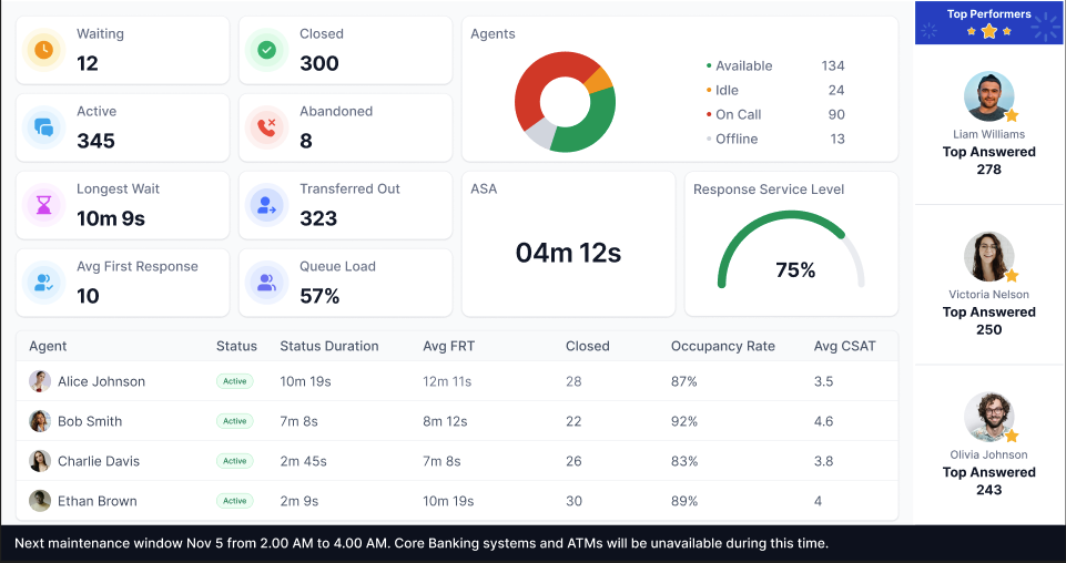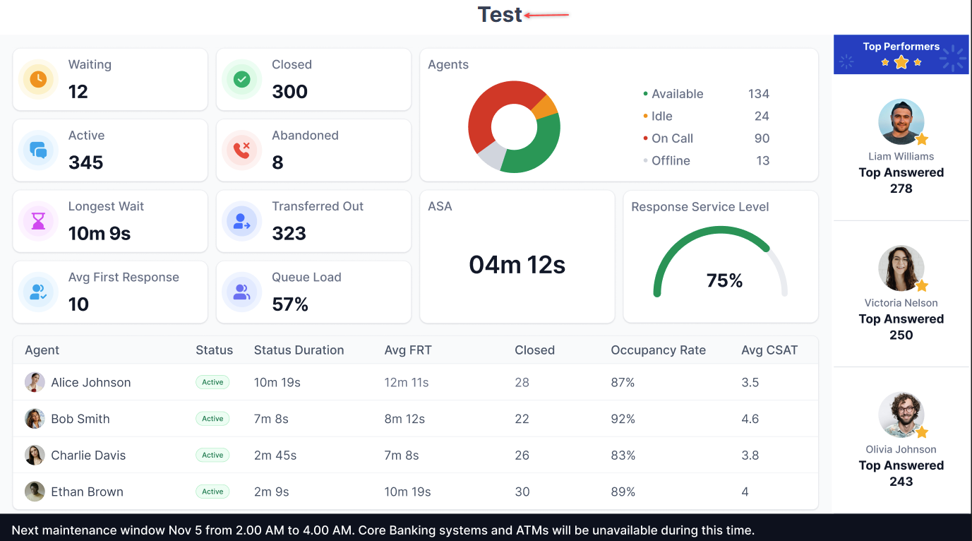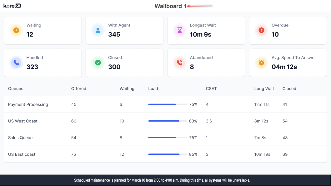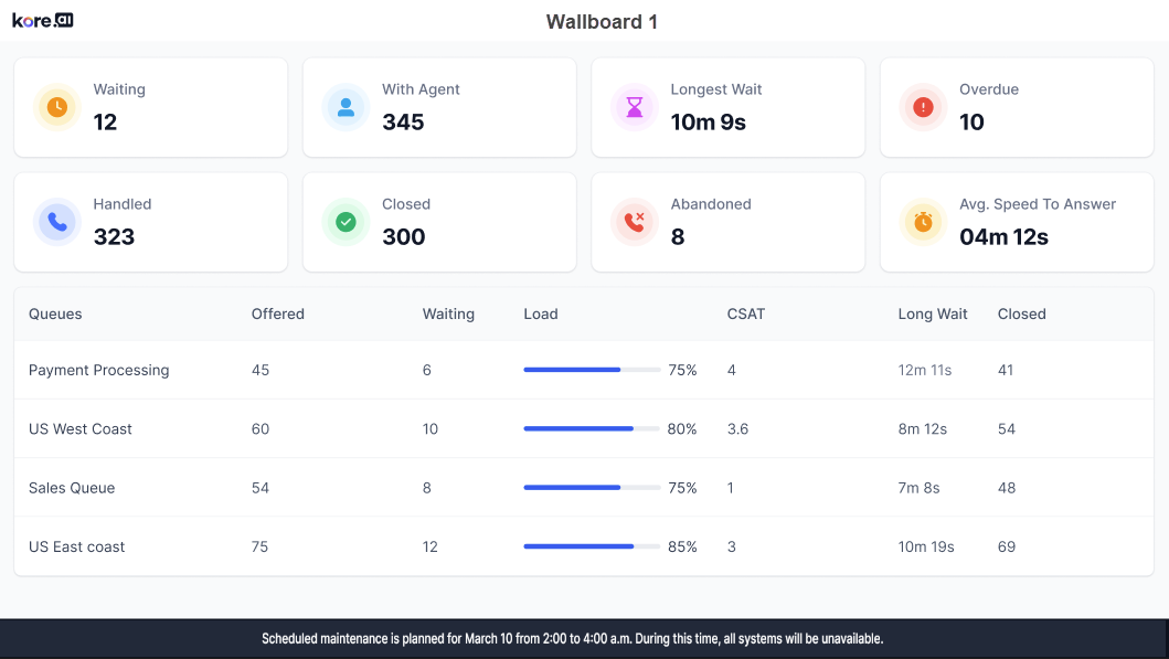 Wallboards enhance the ability to oversee operations efficiently and effectively. Contact Center Administrators and Supervisors can create, edit, and delete the wallboards. Their fixed, high-resolution display ensures that users can access clear and consistent information, suitable for high-definition screens and full-screen viewing.