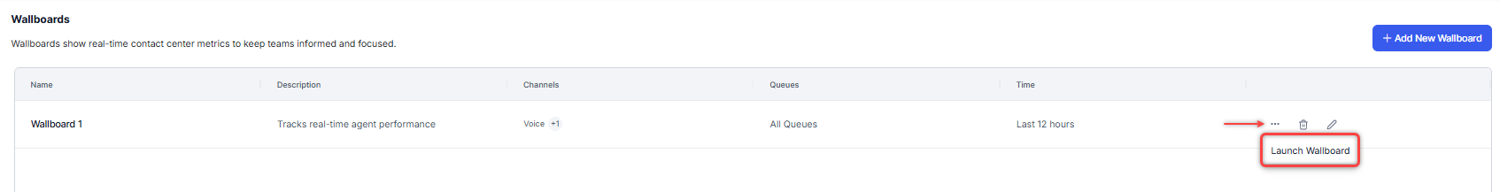 Click the (...) icon and click Launch Wallboard. The Wallboard is displayed in a new browser tab.