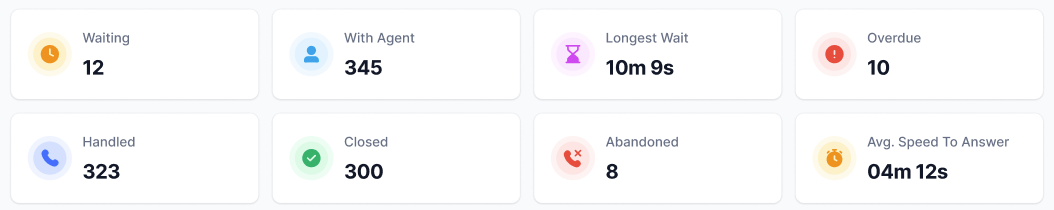 | Waiting | Live | Count of all conversations currently waiting in the queue. |
