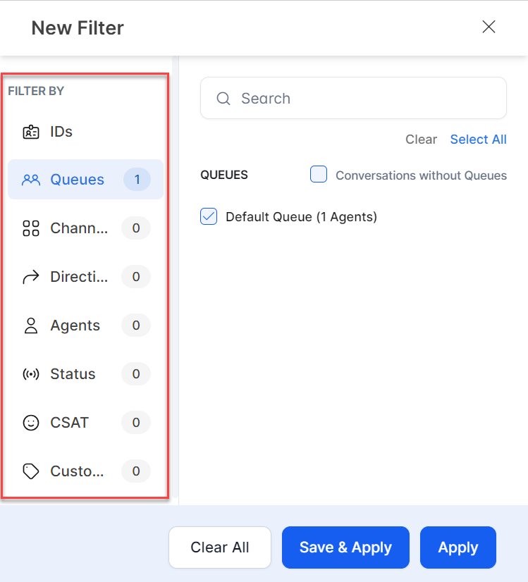 - Queues: The last queue name appears with a +N for more queues. Hovering on the queues shows the order in which the conversation entered the queues.