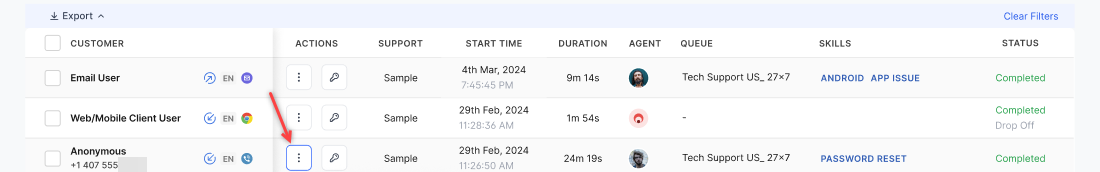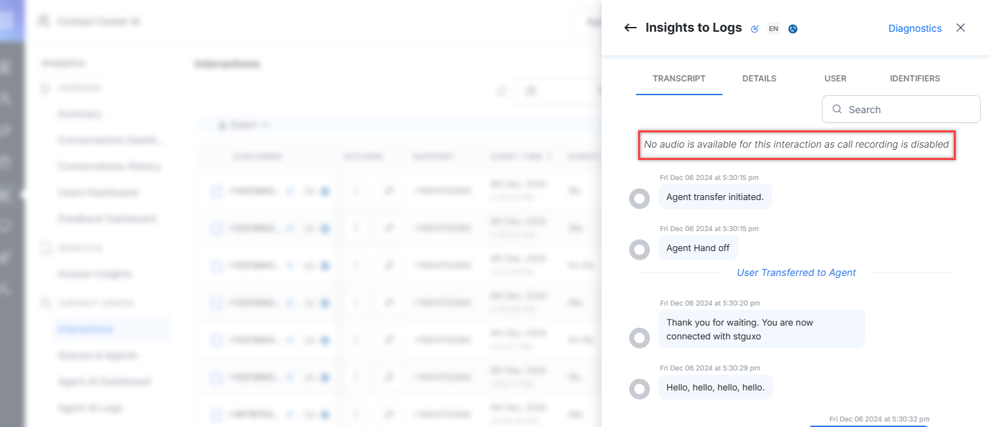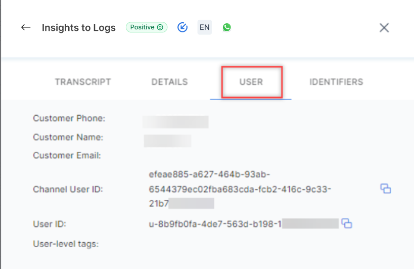 Administrators can configure the system to hide customer Email IDs and Phone Numbers in the Conversations, Details slider, and Export file. Instead, the system displays the internal User ID. Learn more.