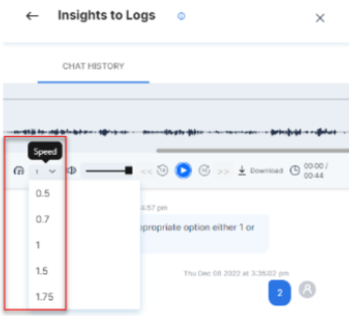 Select Download Chat Transcript, or Download Latency Report. The transcript and latency report downloads in .csv format.