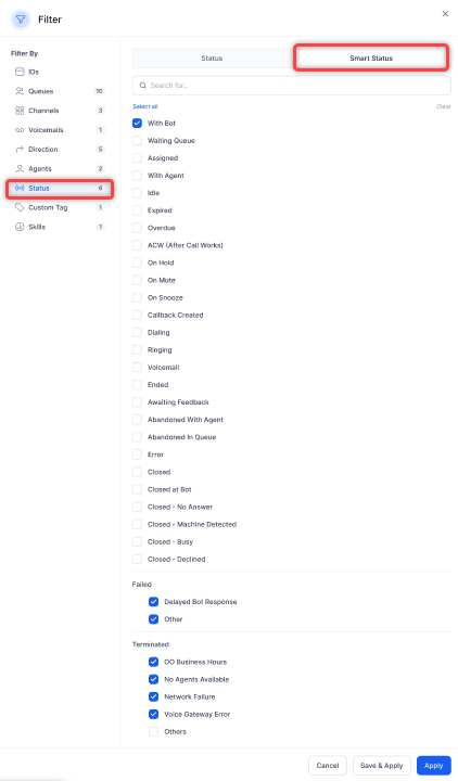 - Completed: Completed refers to a chat conversation where the AI Agent completes the task and ends the conversation.