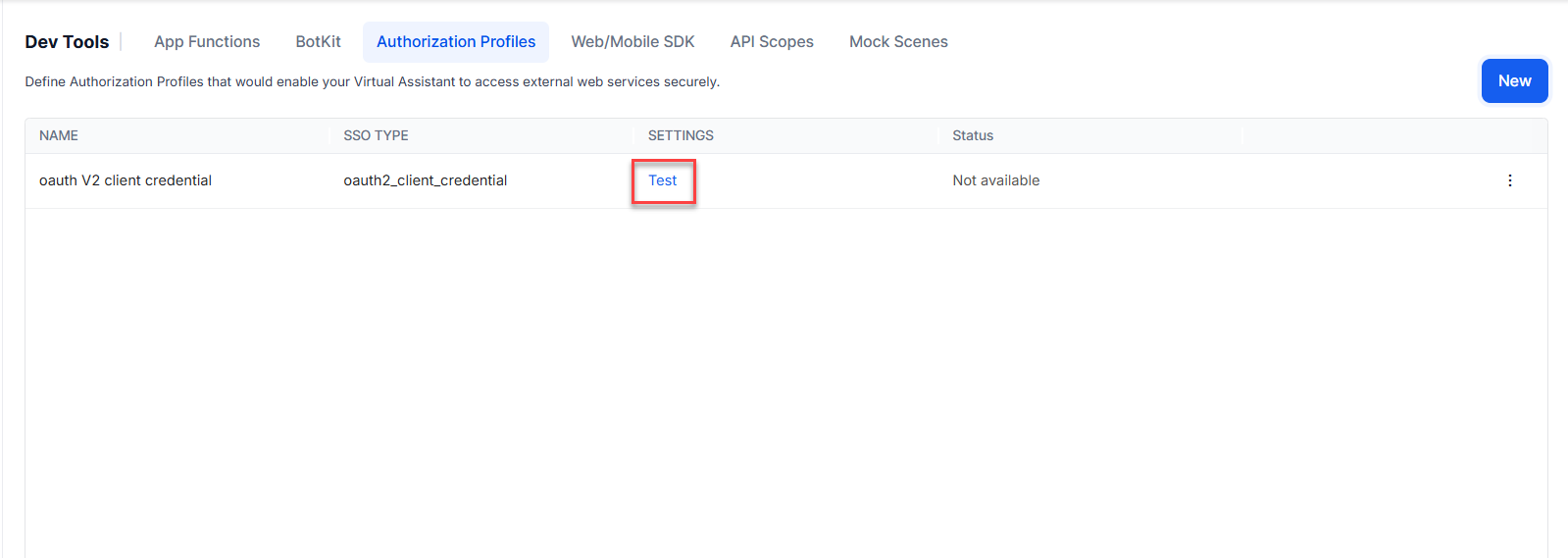 From the left menu, click App Settings, then select Dev Tools > Authorization Profiles.