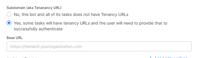 If required, in the Subdomain section, select Yes if the base URL for a web application or user interface uses a tenant name in the URL.