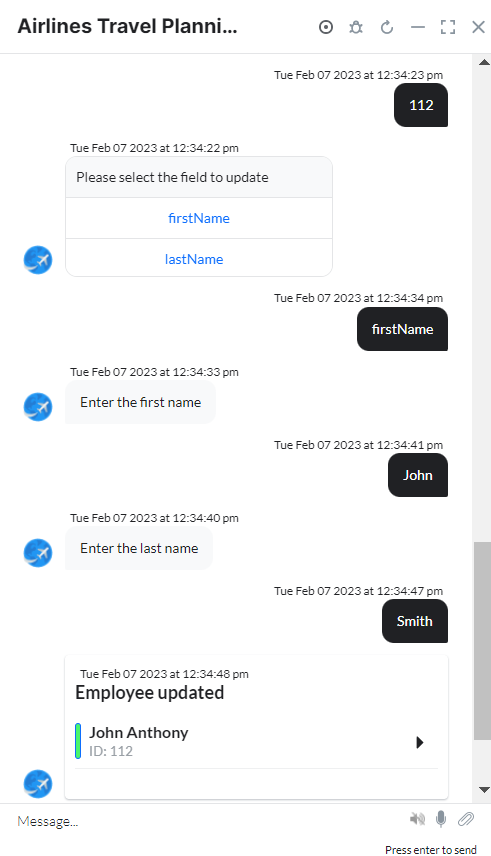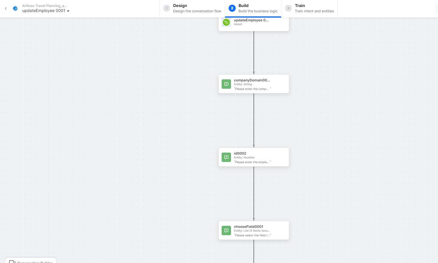 - updateEmployee – A user intent to update an employee.