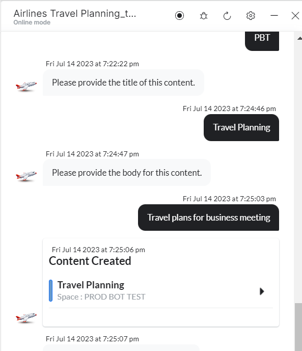 Enter a title and body details when prompted by the AI Agent as shown below:
