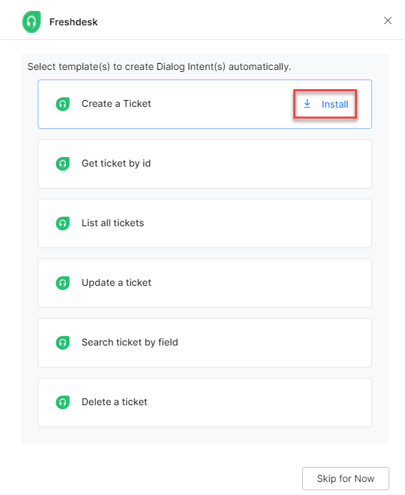 Once you have configured a Freshdesk integration, you can explore and install action templates.