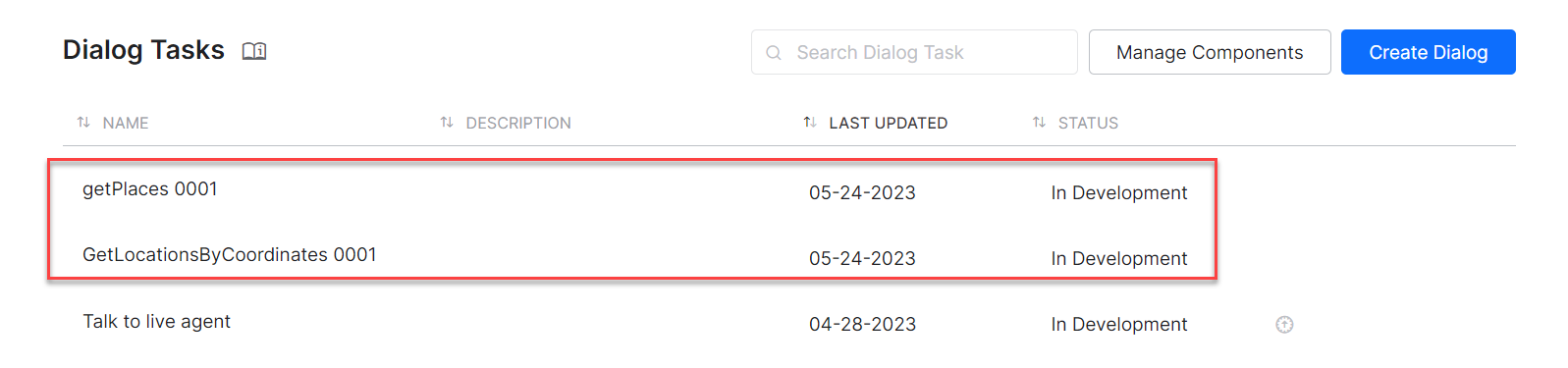 Alternatively, you can create a new dialog task and select the Google Maps integration to select the dialog task from the templates and click Proceed. For example, select the Get location by coordinates task.