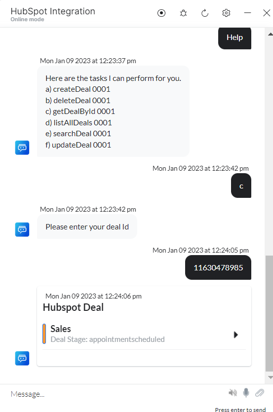 Follow the prompts in the App console to get a deal by ID as shown below: