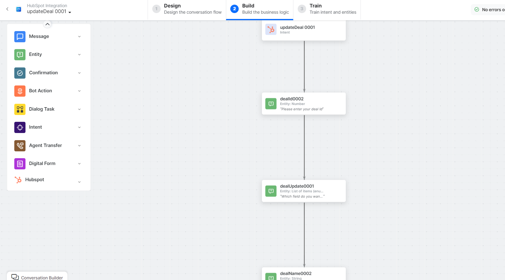 - dealName and dealStage – Entity nodes for gathering the required deal details.