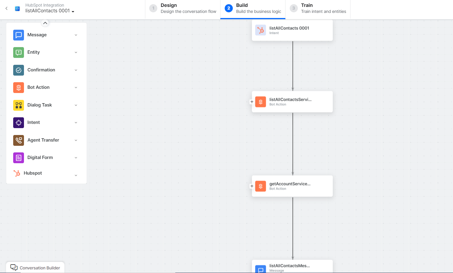 - listAllContactsMessage – A message node with script to display responses for various scenarios.