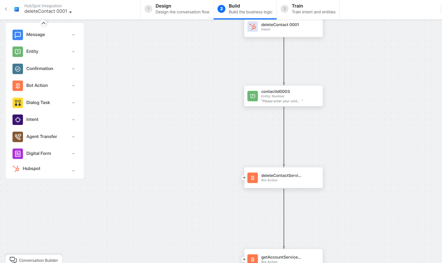 The Delete Contact dialog task is added for HubSpot with the following components: