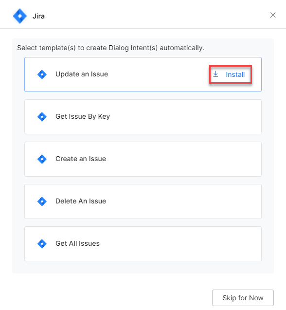 Select the desired dialog task from the templates and click Proceed. For example, select the Update an Issue task.