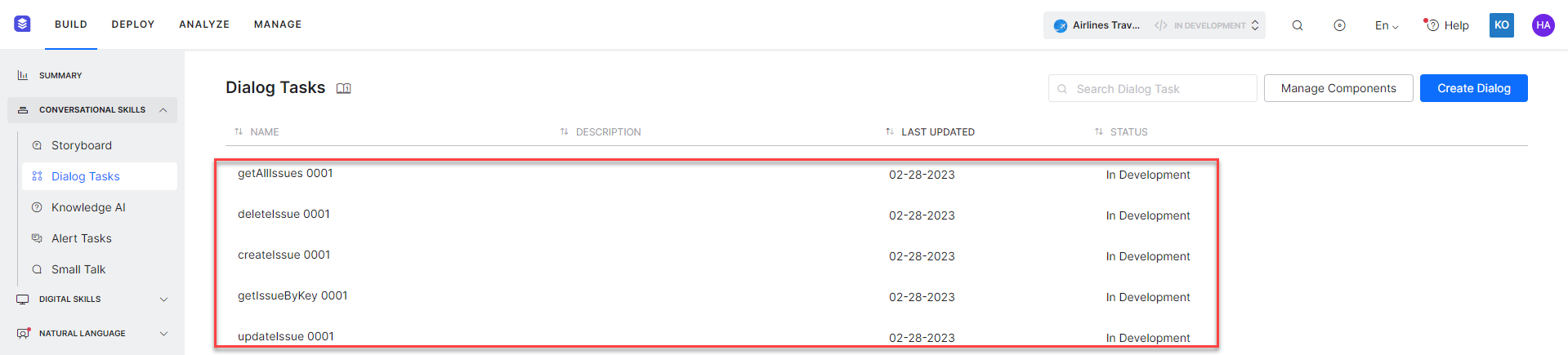 Once all templates are installed, a dialog task for each template is auto-created.