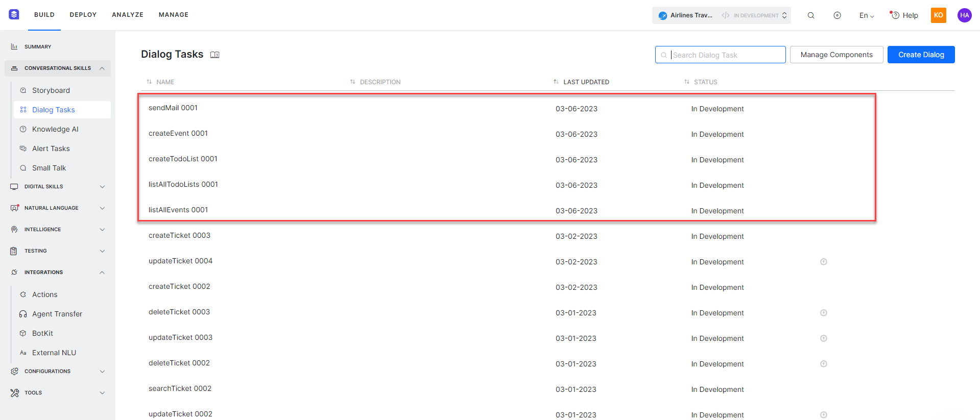 Once all templates are installed, a dialog task for each template is auto-created.