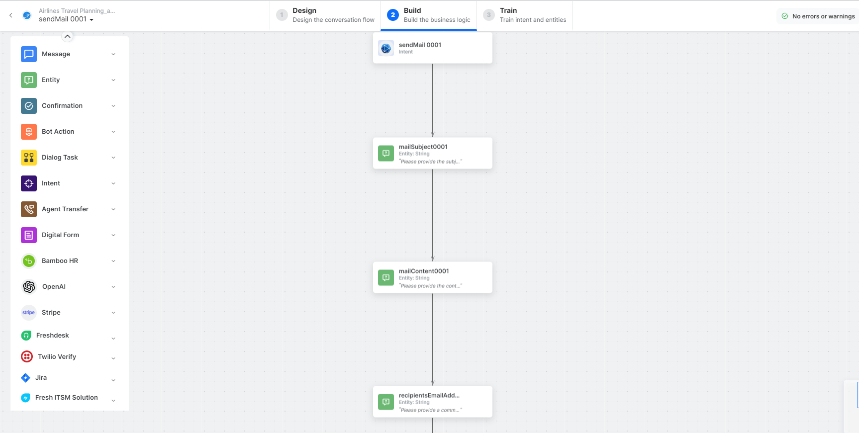 - mailSubject, mailContent, and recipientsEmailAddresses: Entity nodes for sending the email to users.