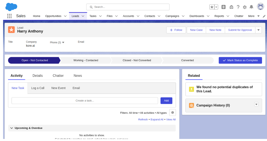 - Click the View Lead button to view the lead details in Salesforce CRM.