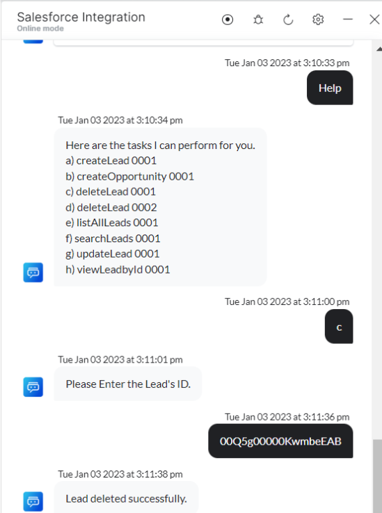 The Delete Lead dialog task is added for the Salesforce CRM with the following components: