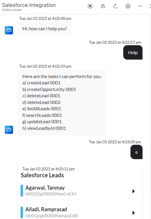 The List All Leads dialog task is added for the Salesforce CRM with the following components: