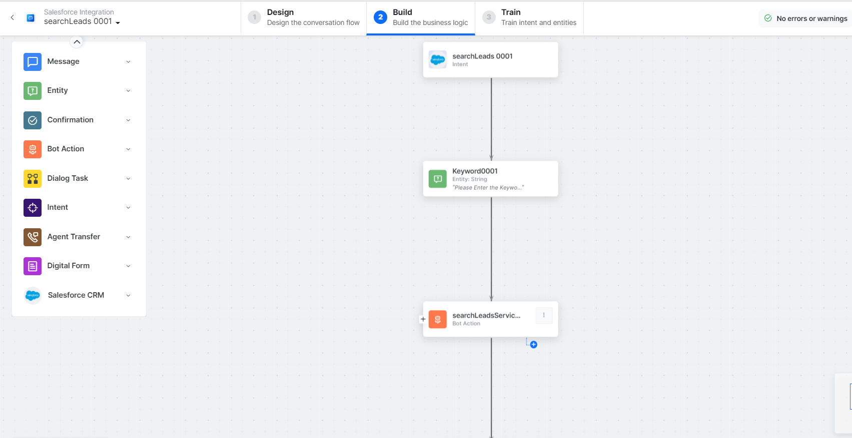 - searchLeadsMessage – A message node with script to display responses for various scenarios.