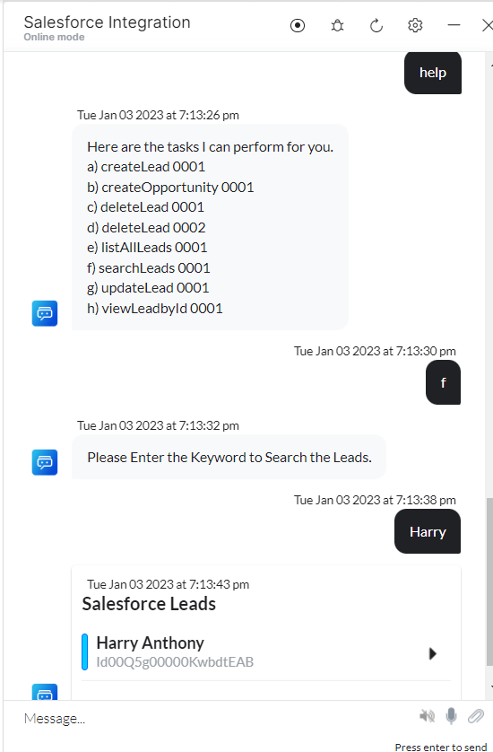 - viewLeadbyIdMessage – A message node with script to display responses for various scenarios.