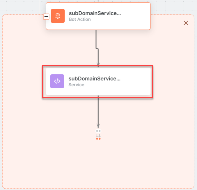 subDomainService – A bot action service to fetch subdomain in an external integration. Click the Plus icon to expand to view the subDomainService bot action component properties.