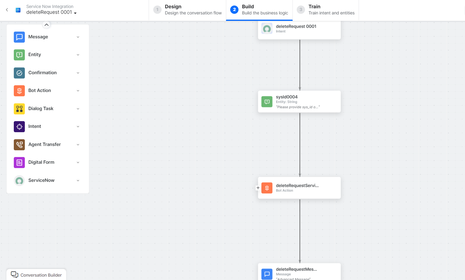 The Delete an Incident dialog task is added for ServiceNow with the following components: