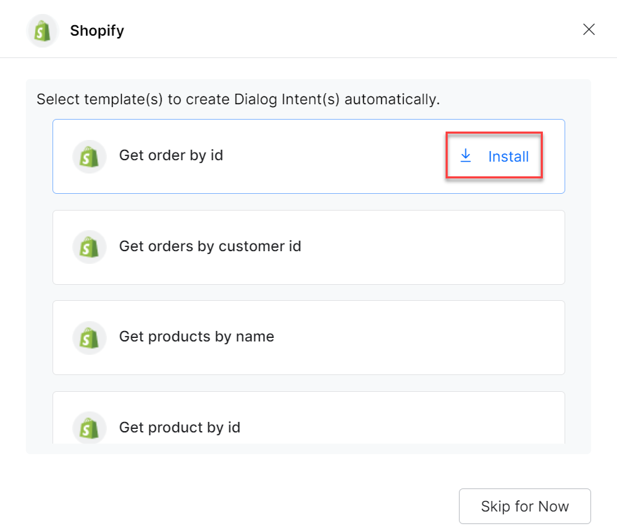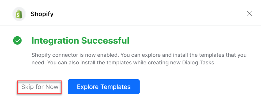You can also click the Skip for Now button to install the Dialog Task templates later.