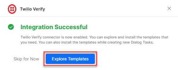 On the Integration Successful dialog, click the Explore Templates button to view the templates.