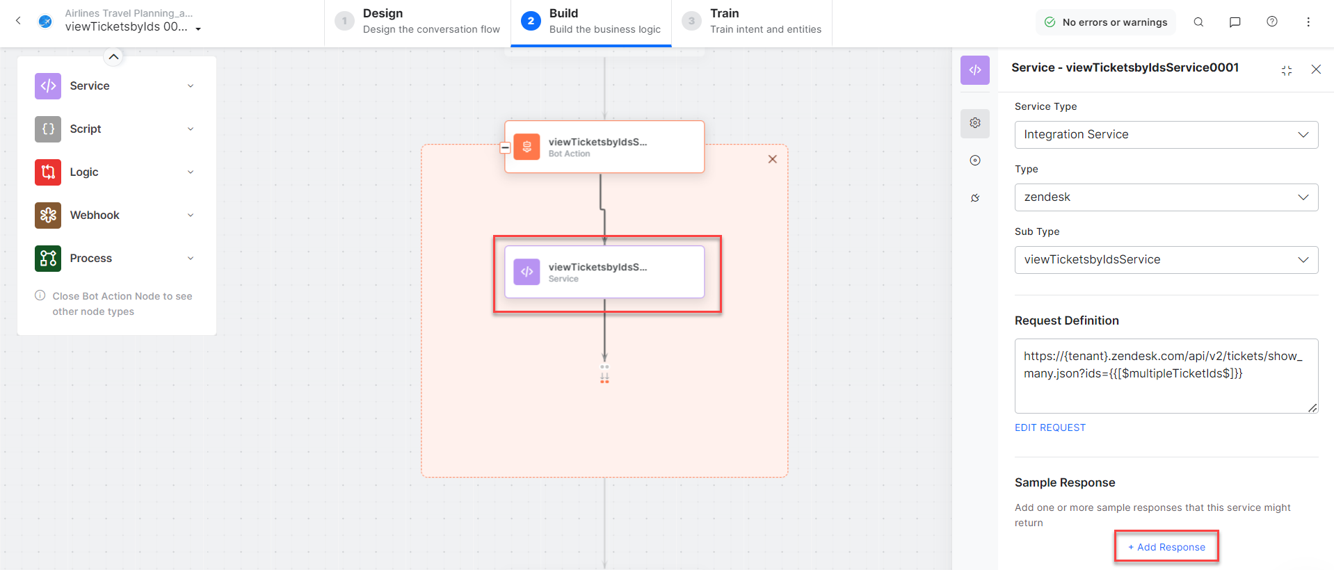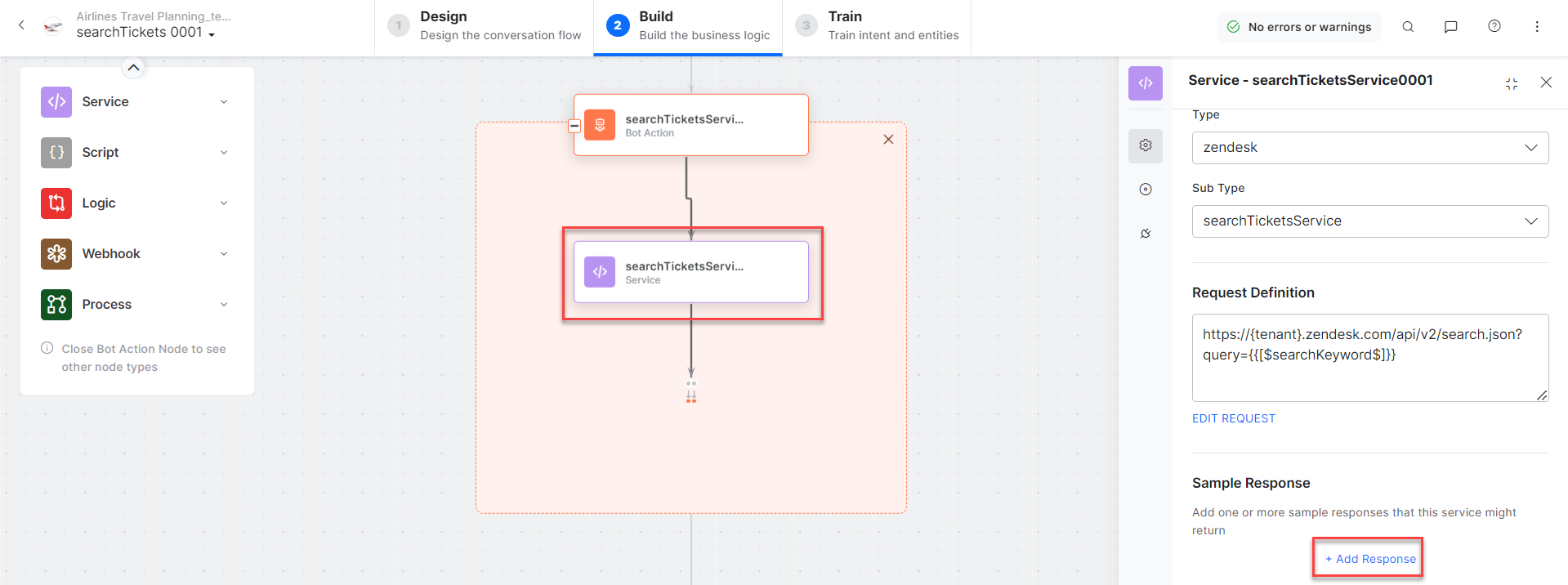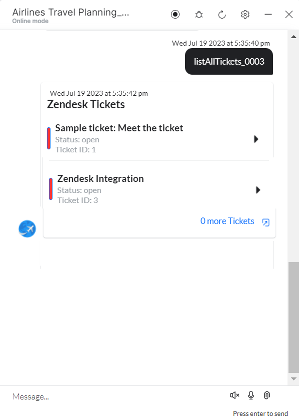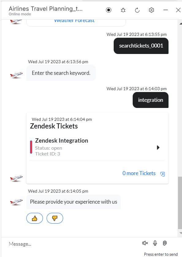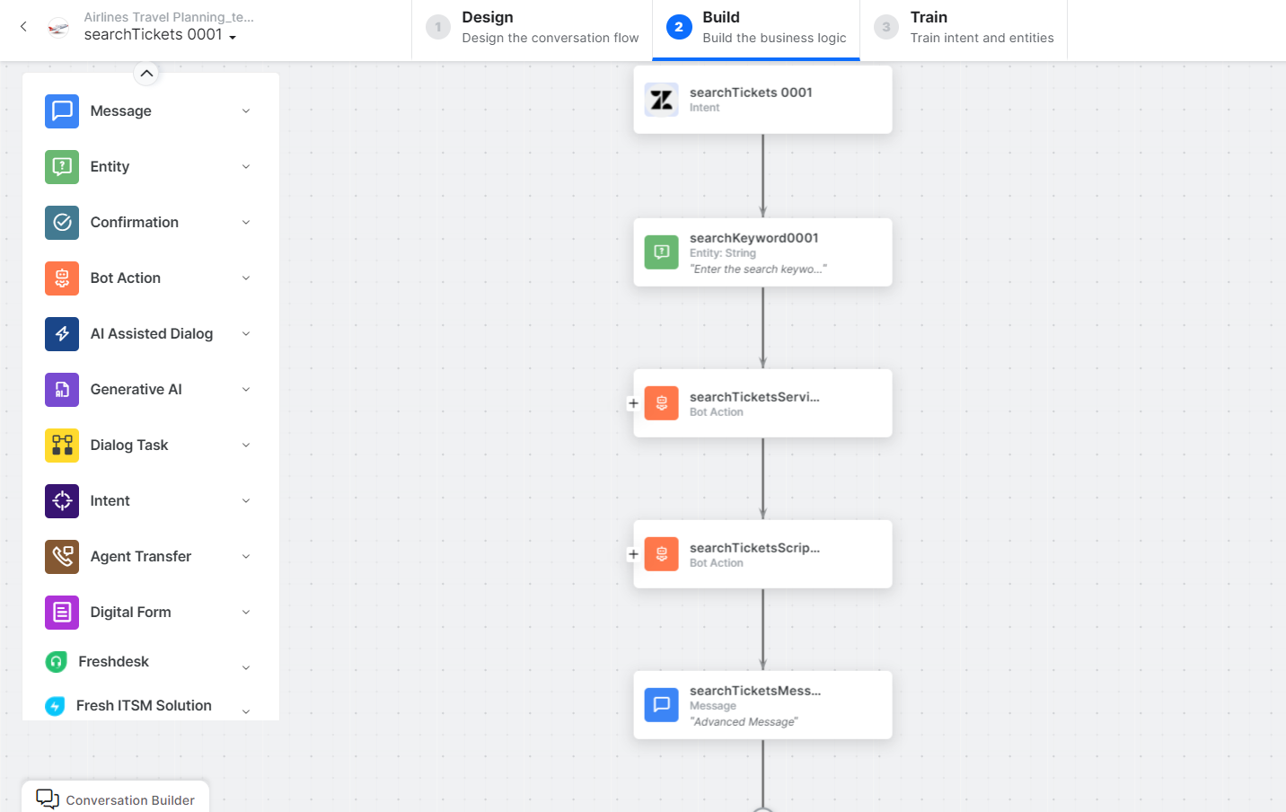 - searchTicketMessage – A message node with the script to display responses for searching tickets with keywords.