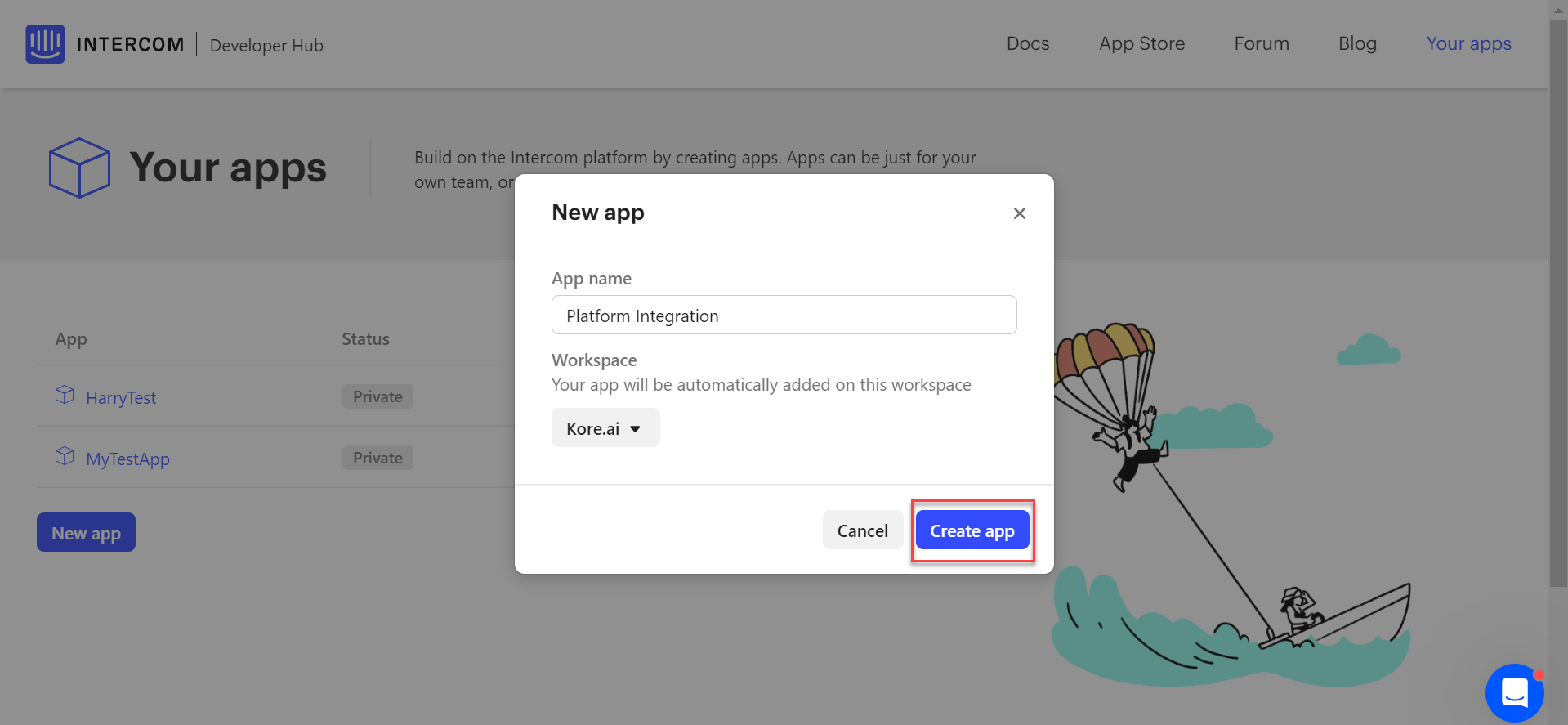 To set up Intercom to receive messages, you will first need to create an app in Intercom.