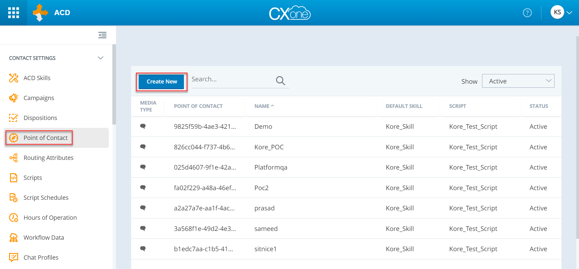From the main menu on the left, navigate to ACD > Contact > Point of Contact and click Create New and select the Single Point of Contact option.