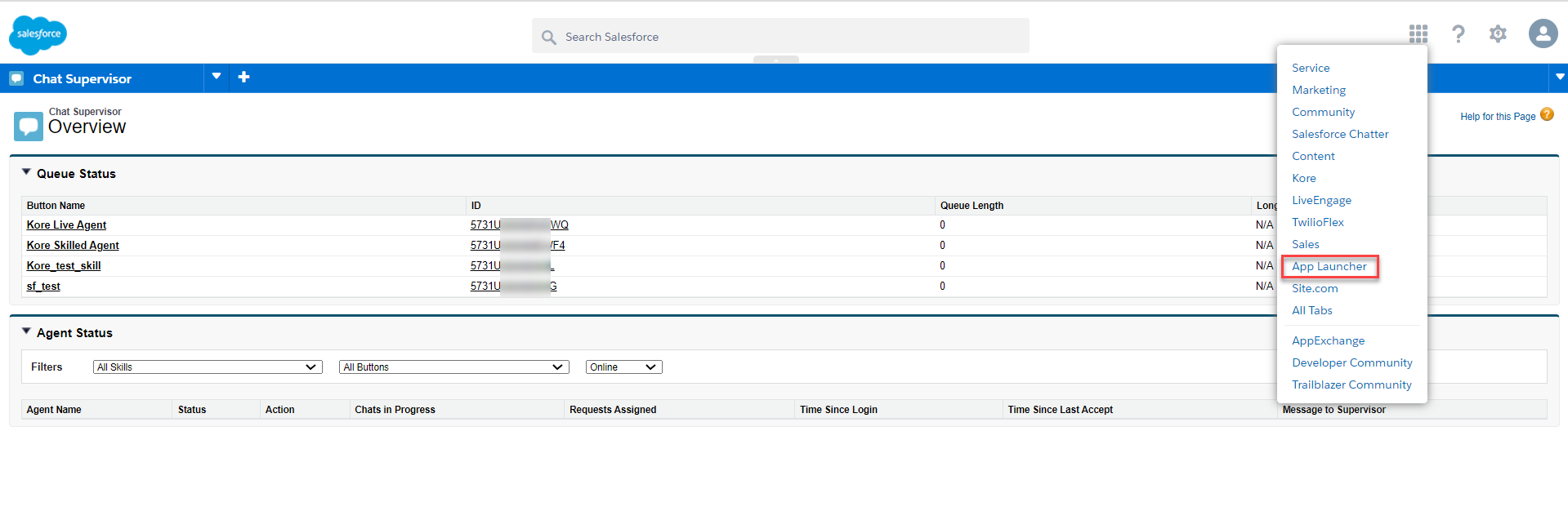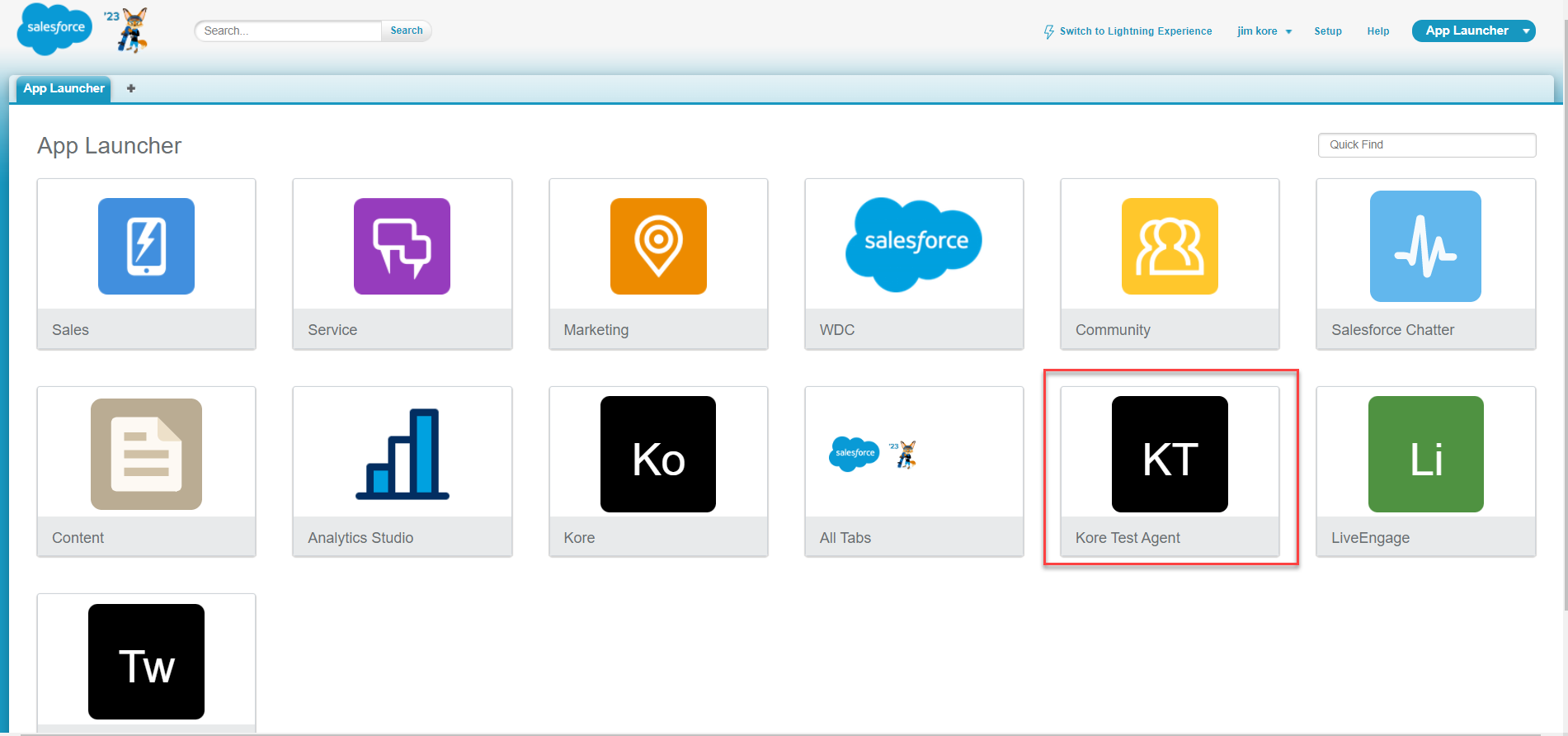 In the App Launcher page, click the Live Agent to open the chat console as shown below: