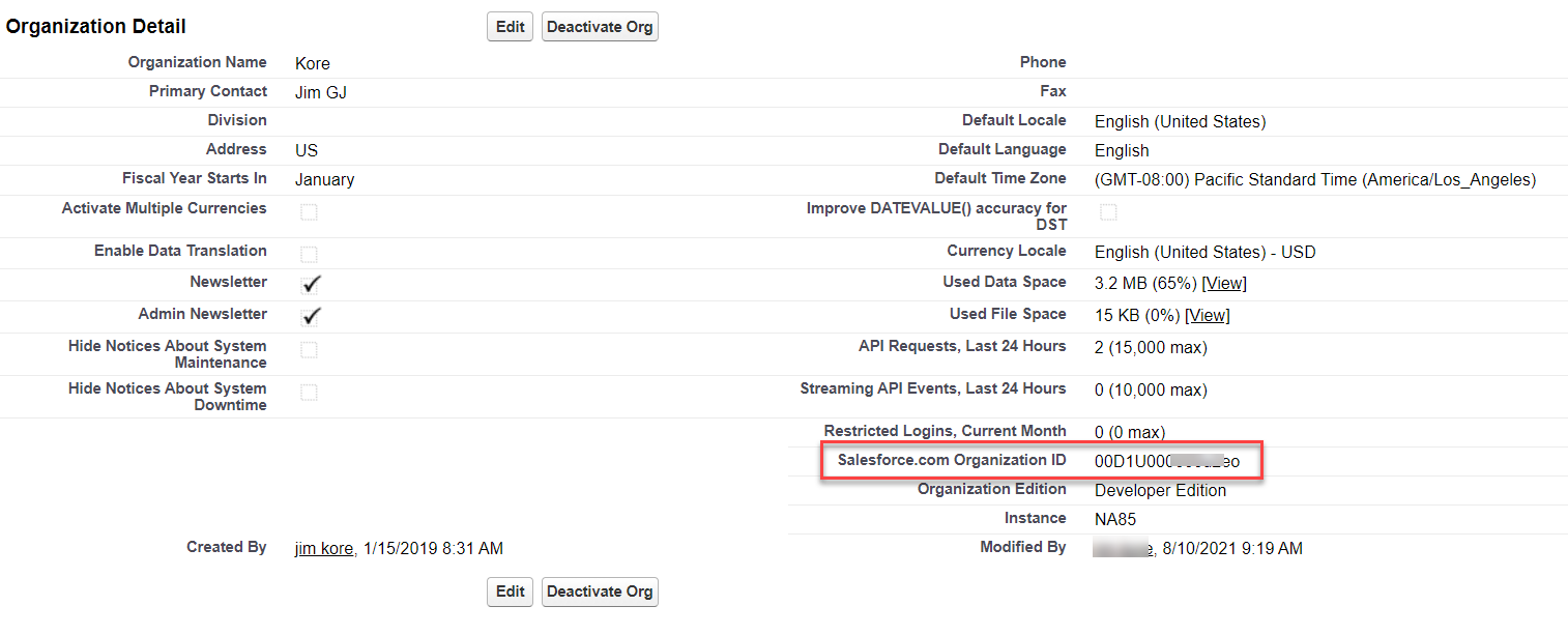 - Organization ID: The Organization ID for the Salesforce, copied before.