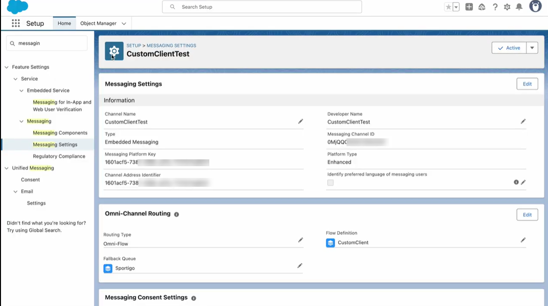 - Complete the steps in Prepare a Salesforce Org for Messaging for In-App and Web: