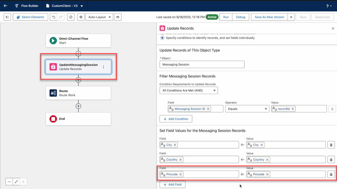 Step 5: Create a Flow to Update Messaging Session in Salesforce¶