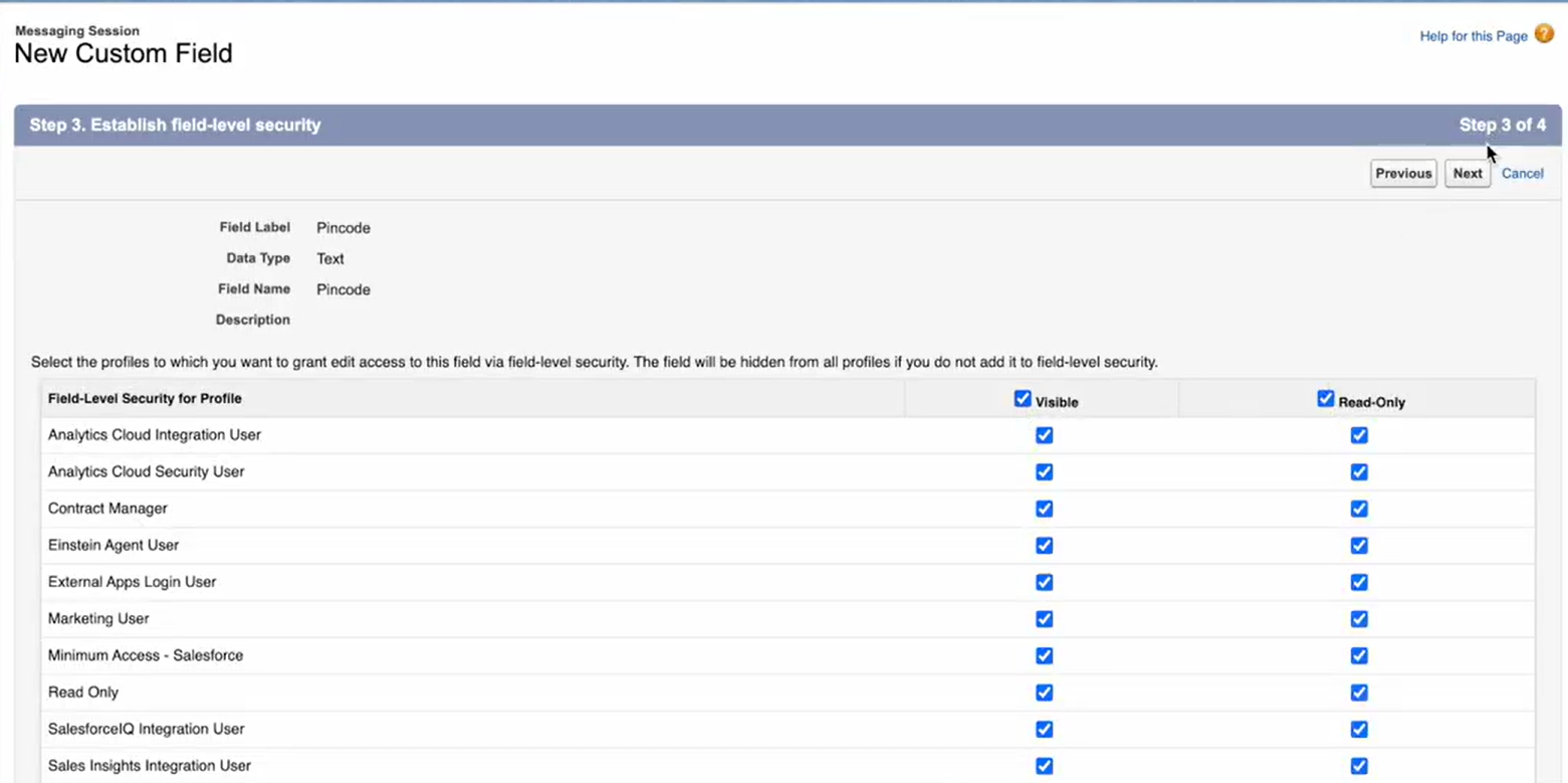 Check the Visibility and Ready-only check boxes as required. Click Next.