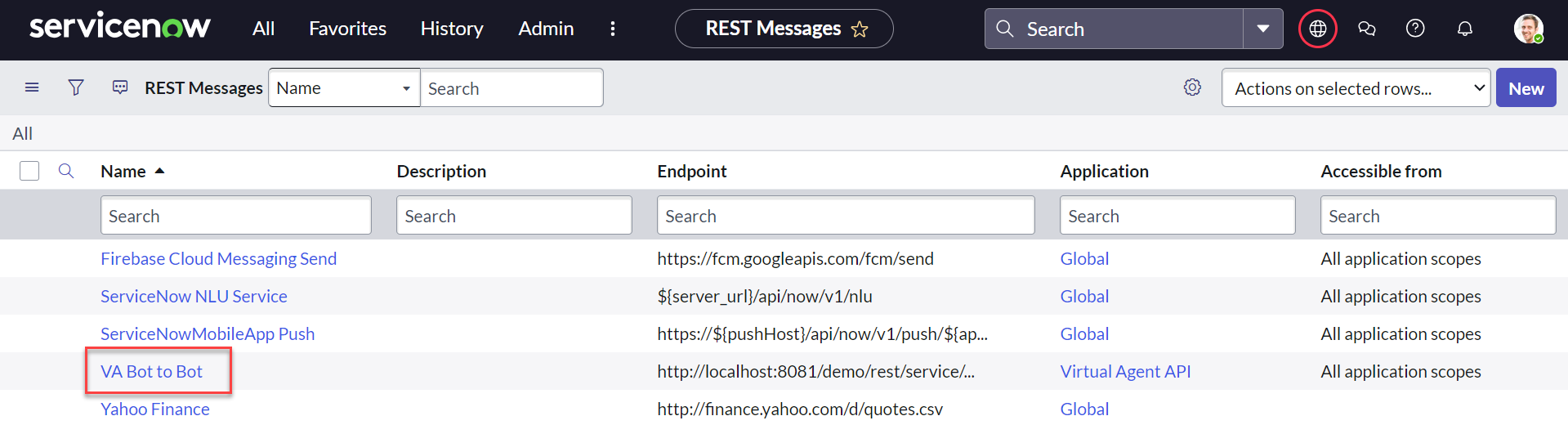 ServiceNow Documentation > Virtual Agent Bot Integration API: