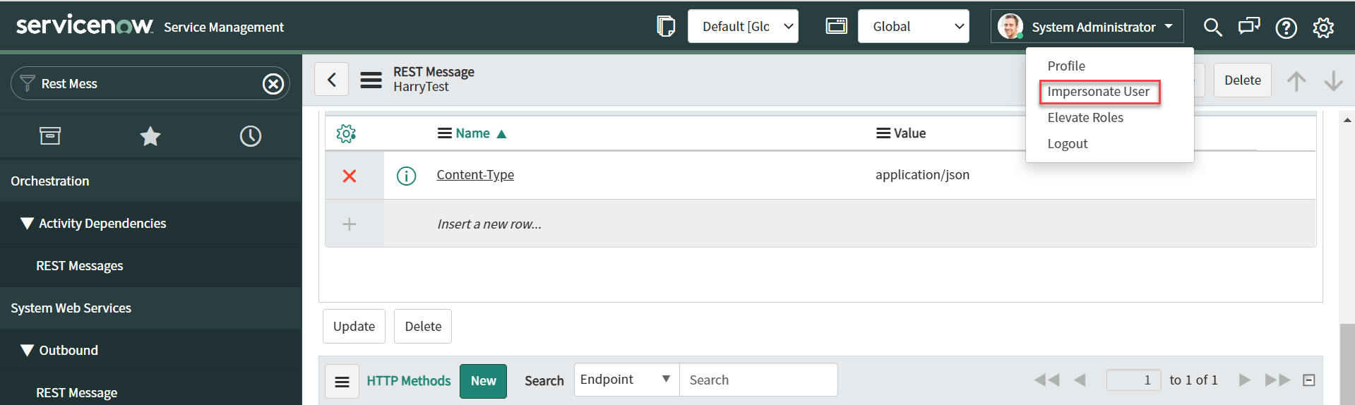 Select All menu and navigate to System Web Services > Outbound > REST messages.