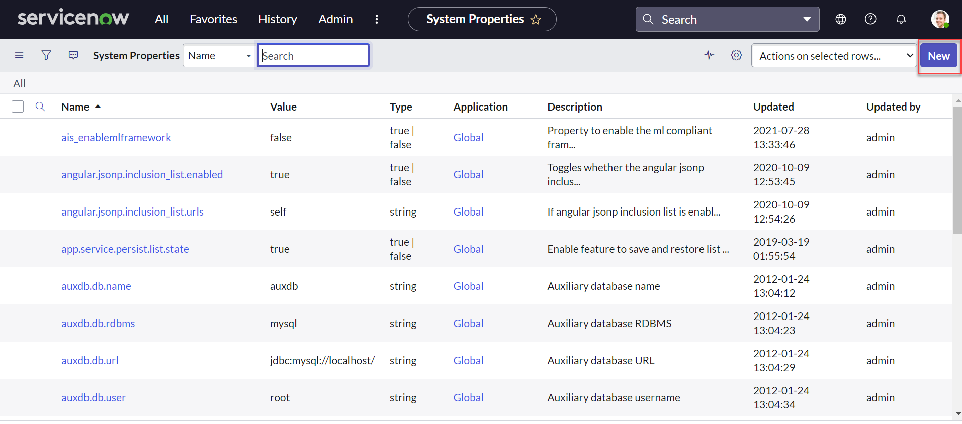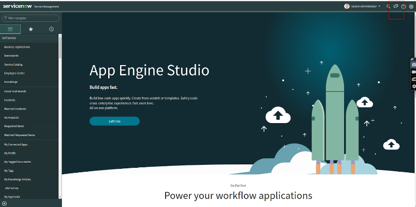 - Log in to the ServiceNow instance with the admin user credentials.