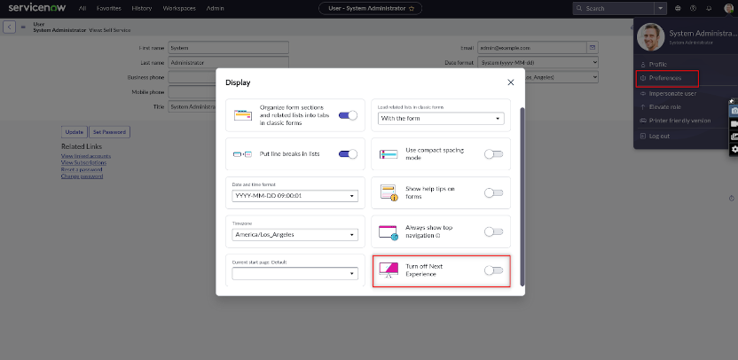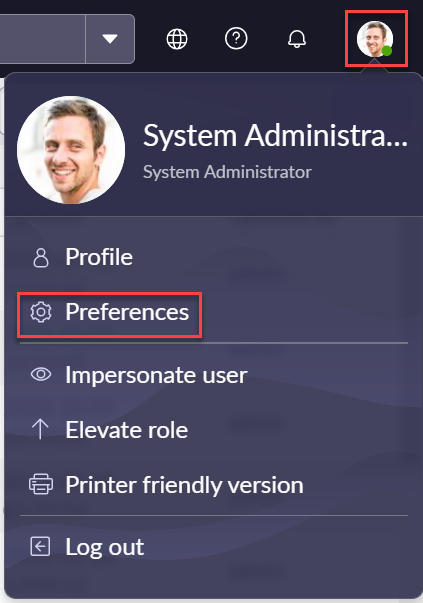 Click on the System Admin profile and select the Preferences menu.