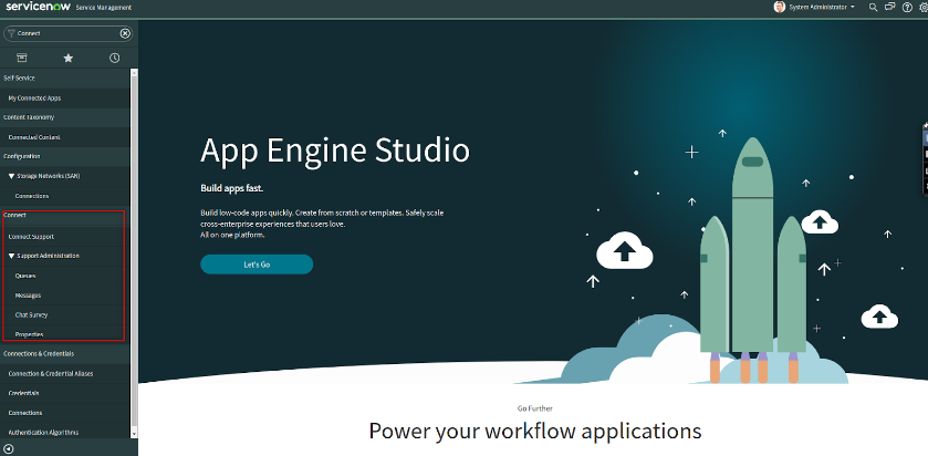 After the successful installation, a new Connect support menu item appears in the left navigation bar.