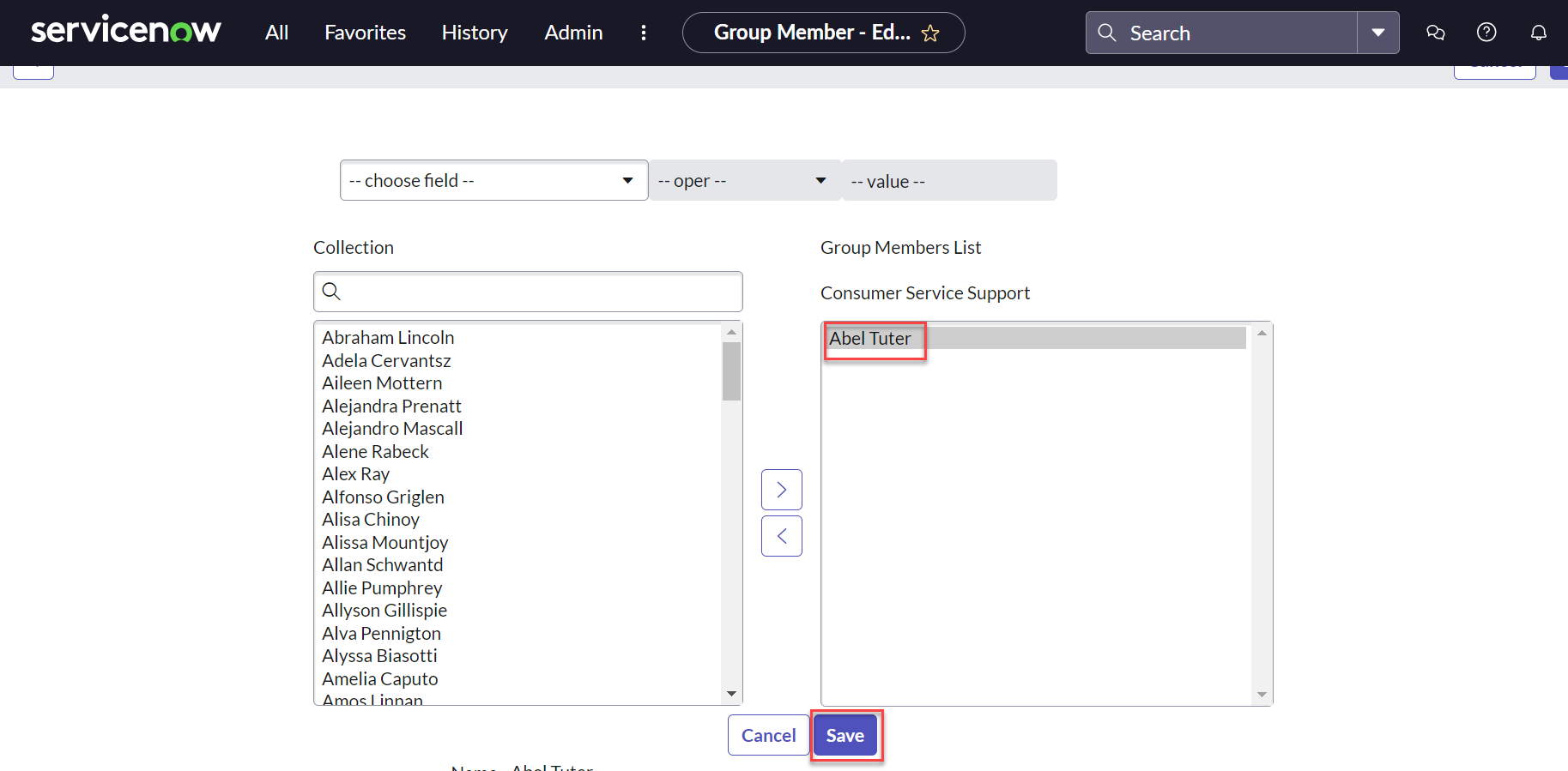 - Select Consumer Service Support in the Assignment group field.