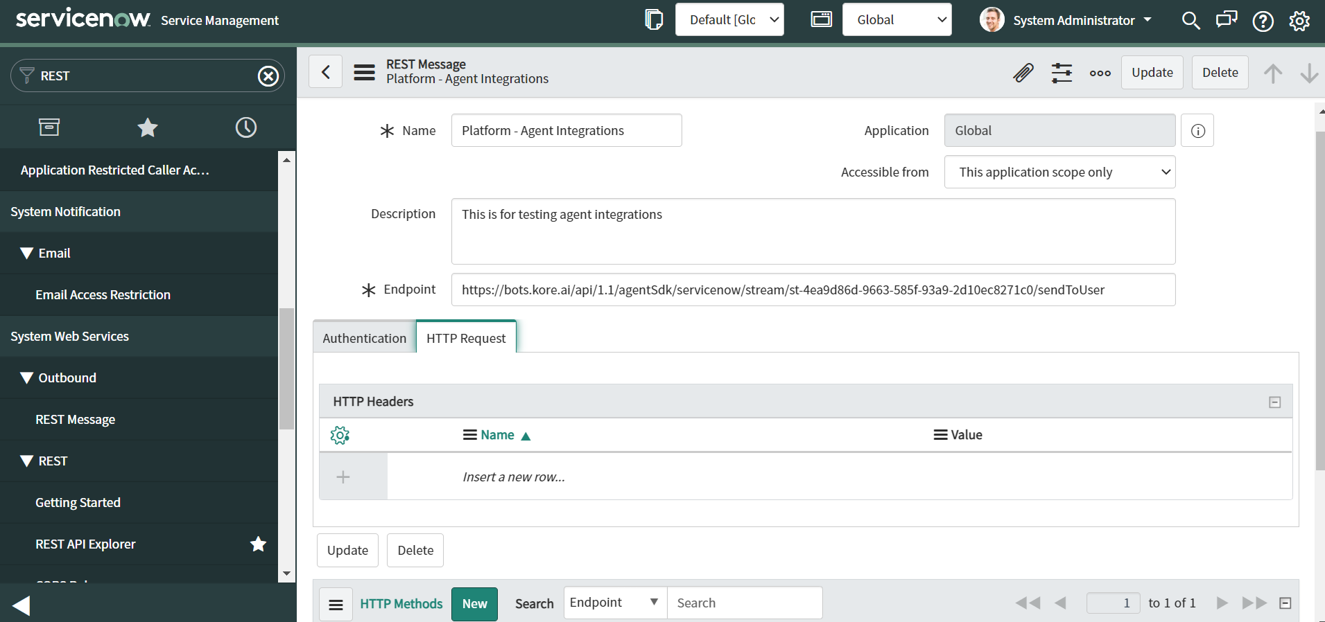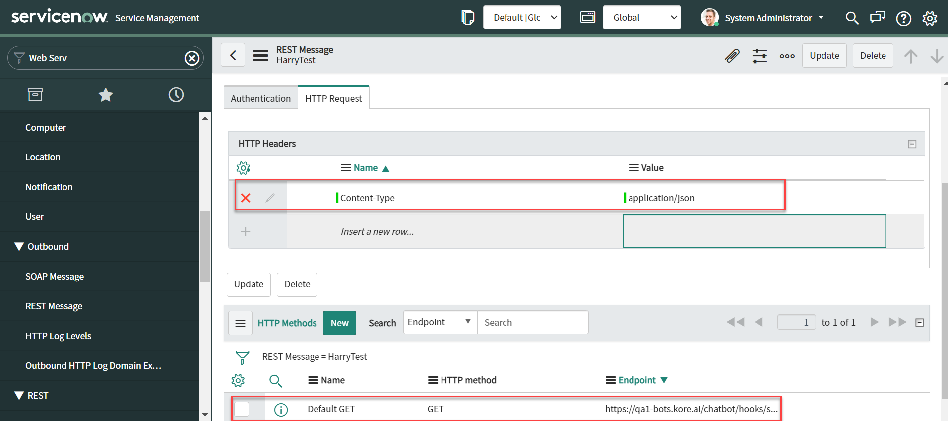 Step 9: Define Outbound REST Message Requests in ServiceNow¶