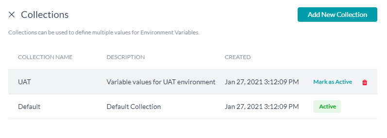 Collections enable you to store multiple value sets for Environment Variables so that you can select the appropriate variable set while promoting the bot definition to a different environment without manual intervention.
